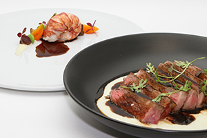 2. Deglaze with the cabernet sauvignon. Bring all of the ingredients to a simmer and reduce by half. It is important to cook the wine long enough so that the alcohol has been completely dissipated.