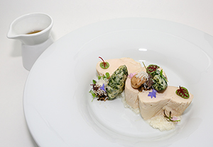 Ingredients: 2/3 cups whey left from making the Ricotta cheese (recipe for Ricotta below) 1 each medium sized onion (thinly sliced) 1 each small carrot (peeled and thinly sliced) 2 each thyme sprigs 2 each garlic cloves 2 tbsp. salt 4 each black peppercorns 2 each skin-on chicken breasts (room temperature) Preparation: Smashed Baby Turnips Ingredients: 2 each large turnips (peeled and cut into 2" dice) 2 qts. whole milk 1 each thyme sprigs 3 tbsp. unsalted butter 2 tbsp. salt Preparation: Chicken Consommé Ingredients: 3 lbs. Chicken meat (white only, roughly chopped) 1 gallon chicken stock (recipe below) 9 each egg whites (large eggs) 1 each small carrot (peeled roughly chopped) 1 each small tomato (roughly chopped) 3 each thyme sprigs 1/2 each black truffles (finely chopped) Preparation: Remove from heat. Ladle only the clear liquid into a damp cheesecloth-lined sieve. Do not press down on solids; just allow the liquid to drip. If any particles remain in broth, strain again in the same manner. The consommé should be clear and have a tea like color. Adjust the seasoning with salt only. Add chopped black truffles to the warm consommé once in the bowl. Chicken Consommé Ingredients: 5 lbs. chicken bones (including necks, backs and feet if possible) 1 each large onion (skin removed and quartered) 3 each medium sized carrots (peeled and cut into ½ inch thick rounds) 1 each medium sized celery root (peeled and ½-inch dice) 1 each leek (white only, washed, ½ inch rounds) 7 each thyme sprigs 10 each parsley stems 2 each fresh bay leaves 8 each whole black peppercorns 3 each garlic cloves (peeled) 3 gallons cold water Preparation: Place chicken, vegetables, and herbs, spices and water in a stockpot large enough to handle the volume. Cook on high heat until you begin to see bubbles break through the surface of the liquid. Turn heat down to medium low so that stock maintains low, gentle simmer. It is very important that the stock not come to a rolling boil. Skim the scum from the stock regularly throughout the cooking process. Add hot water as needed to keep bones and vegetables submerged. Simmer uncovered for 6 to 8 hours. Strain stock through a fine mesh strainer into another large stockpot or heatproof container discarding the solids. Cool immediately. Place in refrigerator overnight. Remove solidified fat from surface of liquid.