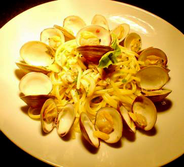 drain the pasta and toss it with the clams and sauce. Add chopped