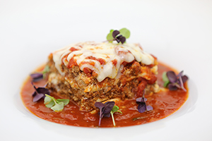 with tomato basil sauce. Then top with the last pasta sheet and 1 cup of tomato basil sauce. Cover with