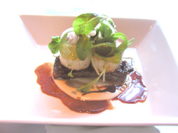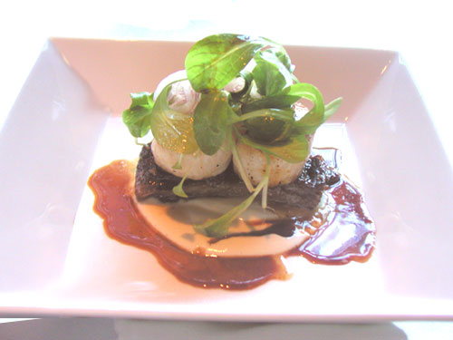 of the sauce over the short rib and then top with two seared scallops.