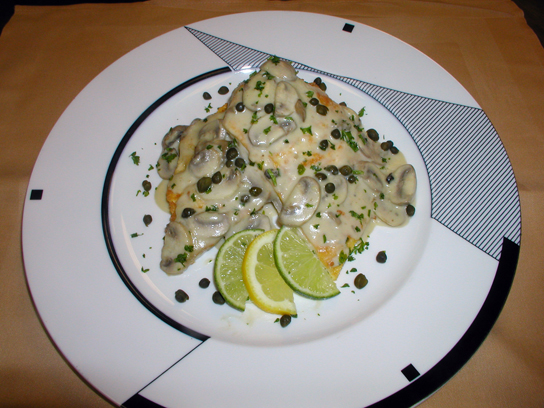 When chicken is done, pour sauce over and garnish with capers