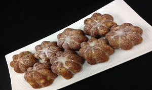 Preheat oven to 400 degrees Fahrenheit. Sift the flour, baking soda, salt, cardamom and cinnamon together and set aside. Beat the eggs and sugar together using a mixer set on medium until the mixture becomes thick. Reduce speed to low and mix in the vanilla and applesauce. Add 1/2 cup melted butter, sour cream and zest and beat until combined. Gradually add the flour mixture and mix until smooth. Fold in apples and place mixture into molds. Bake until a skewer comes out clean (approx. 15 minutes). Cool for 5 minutes in the pan on a wire rack. Unmold the cakes and cool completely on the rack.