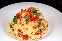 Bring a pot of water to boil (salted). Add fettuccini. Cook until al dente (2 minutes). Remove from water and cool in refrigerator. In the same pot of water, cook Broccolini until bright green. Drain and cool in refrigerator. Cut Broccolini into 1" long pieces and set aside. Cut sun-dried tomatoes into thin slivers (like matchsticks) and set aside. Toss the vegetables in a sauté pan with the cream sauce and heat. Add the fettuccini and the Parmesan cheese. Adjust the seasoning with salt and white pepper.