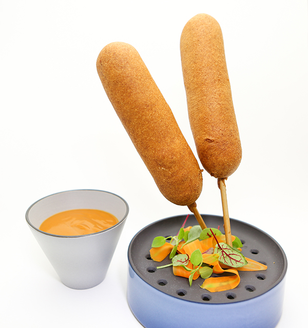Insert candy sticks half way into a hot dog. Dredge the hotdogs in flour, and then dip them into the batter mixture. Gently place in the deep fryer. Cook until golden brown. Remove, drain on a towel lined sheet pan. Keep warm.