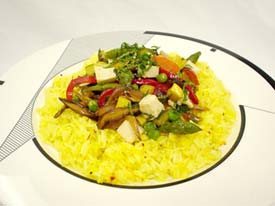 5. Serve in a ring of Saffroned Basmati rice.