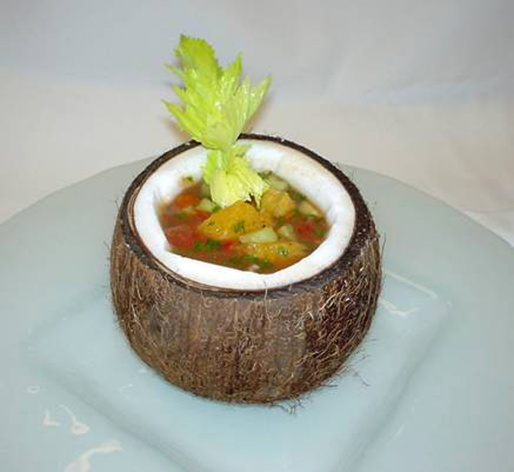 vegetable juice, chicken broth, lime juice and hot sauce. Cover