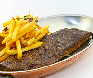 Just before grilling, remove all of the shallots, thyme and peppercorns from the meat and discard. Season all four sides of the beef with the two tablespoons of kosher salt and the coarsely ground black pepper. Immediately place on the grill. Do not move the steaks for at least two minutes unless you have flare ups. After two minutes flip the steak and let sit on the grill for three minutes, this will achieve a medium rare doneness. Remove the steak from the grill and let rest for approximately 7 minutes.