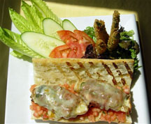 Place diced tomato in a small bowl and drizzle with olive oil and lemon juice. Add fresh coriander leaves. Season with salt and pepper to taste. Set aside. Season chicken breast with salt and pepper. Place one sage leaf on each breast. Wrap with sliced prosciutto. Heat sauté pan very hot. Add olive oil to hot sauté pan. Carefully sear wrapped chicken breast until golden brown and the chicken reaches an internal temperature of 165°F.