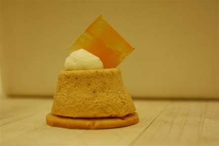 Mix together Graham Cracker crumbs and only enough butter to hold the crumbs together. Pack this crust in a half-inch layer on the bottom of a 10" greased cake pan. Pour the cheesecake batter in the mold and bake at 325° until a "testing" knife comes out clean from the center. Approximate baking time is one hour, depending on the oven.