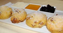 Mix until fully incorporated. The mix will be a little loose. Add in spiced candied walnuts. Flour table surface and roll out dough to desired thickness, usually about ½” thick. Cut out using any size cutter or knife. Egg wash and sprinkle with cinnamon sugar.