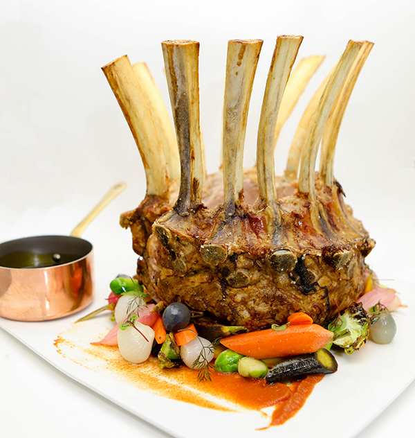 Preparation: Bend each rack into a semicircle (meat side in and fat side out) and using kitchen twine tie them together at the base and center, in order to hold the racks together. The rib ends should be pushed outward to create the look of a crown. Rub the veal roast with olive oil. Combine the salt, pepper, garlic and thyme and press over the Veal roast. Place the roast in a bundt pan with the center of the pan coming up thru the middle of the roast. Place on the middle rack of the preheated oven and roast until the meat reaches an internal temperature of 125°F. This is approximately 8-12 mins per pound. Remove from the oven, transfer the roast to a rack, cover with aluminum foil and let rest for 20 mins. On a white square platter, using roasted tomato fondue, mask the bottom of the platter. Place the veal crown roast onto the platter and arrange roasted vegetables. Garnish with micro fennel and micro red sorrel. Carve & serve.