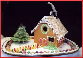 Sometimes it is better to decorate elaborate pieces flat, and then assemble the pieces. Use your imagination! Pretzels become windows. Gum drops trim the roof like holiday lights. Use marshmallows, chocolate chips or flat mint candies for shingles. Candy canes and lollypops decorate the garden. Butterscotch doorknobs and licorice shutters complete the house! Any colorful, small candies will do the trick. Use the icing to attach the candies to the house.