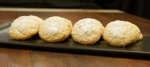 Preparation: Mix flour, baking powder, spices and salt together and set aside. In an electric mixer with paddle attachment, cream butter and cream cheese together until light and fluffy. Scrape you bowl a few times to help it get smooth and creamy. Add in the 1 whole and egg yolk. Mix until combined. Add in spiced rum, vanilla extract and almond extract next. Mix until combined. Scrape down your bowl. Add in dry ingredients. Mix until combined. Do not over mix. Let mix refrigerate overnight. Pre-heat oven to 325°F. Pull out cold dough. Using a small scoop, start scooping your dough into bowl of confectioners’ sugar. Roll balls individually by hand in the sugar until well coated. Place onto cookie sheet in consecutive rows and enough spacing. Cookies will spread out a little bit. Dust the tops with more confectioners’ sugar before baking. Bake for 7 minutes in conventional oven. After 6 minutes, rotate your pan to ensure they get a good amount light golden brown color. Cookies will look crackly. Do not over bake otherwise cookies will not have that soft center you want. Let cool on a cookie rack then place into an air tight container. |